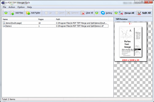 A-PDF TIFF Merge and Split có thể kết hợp hoặc cắt hàng trăm dữ liệu TIFF nhanh chóng.