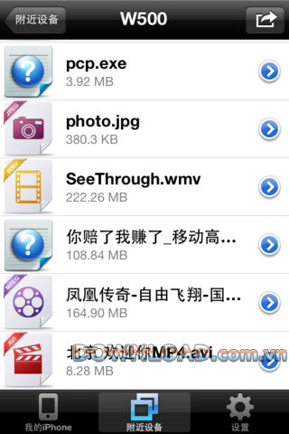 - Duyệt audio, video và file, chia sẻ từ My Document