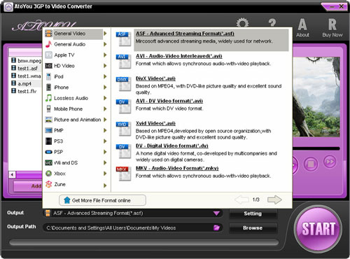 ATOYOU 3GP Converter bao gồm 2 phần mềm chuyển đổi: 3GP to Video Converter và Video to 3GP Converter.