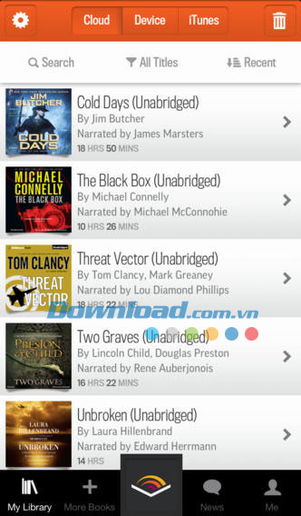 Toàn bộ các đầu sách Audible đều cho phép tải dưới dạng không dây từ My Library, trên thẻ Cloud và từ ứng dụng Audiobooks from Audible for iOS.