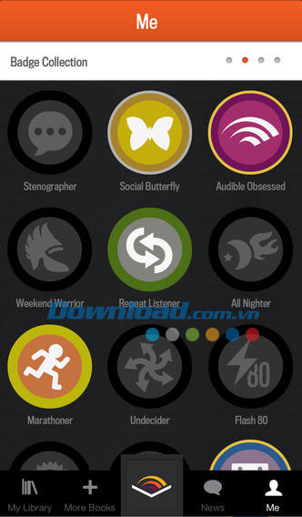 Sử dụng thư viện như một giá sách di động. Toàn bộ các tiêu đề sách nói mạn đã mua trên trang Audible đều sẵn sàng cho việc nghe từ màn hình My Library trong ứng dụng Audiobooks from Audible.