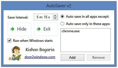 Thật đáng tiếc vì hầu hết các ứng dụng hiện đều không được tích hợp sẵn chức năng sao lưu tự động như MS Office. AutoSaver sẽ bổ sung thêm chức năng hữu ích này cho tất cả các ứng dụng.