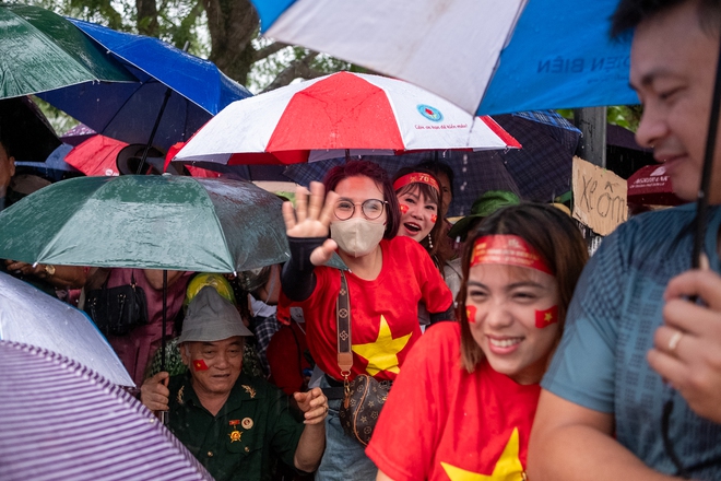 Cơn mưa lớn bất chợt khiến nhiều người không kịp trở tay, nhưng ai nấy đều hào hứng kiên nhẫn đứng nguyên vị trí chờ đợi theo dõi buổi lễ diễu hành, diễu binh