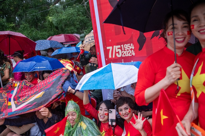 Dù mưa lớn nhưng ai nấy đều rất vui vẻ, háo hức chờ đợi theo dõi buổi Lễ kỷ niệm này