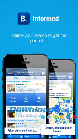- Sử dụng bản đồ hữu ích được tích hợp sẵn để tìm kiếm khách sạn phù hợp yêu cầu tại những địa điểm hoàn hảo và lên kế hoạch cho lộ trình của mình.