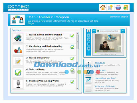 Connect Learning English for iPad hỗ trợ người dùng học cách nói và hiểu tiếng Anh với phương pháp tiếp cận mang tính thực tiễn của Connect Learning. Bạn có thể học tại nhà, ở công sở hoặc bất cứ lúc nào và ở bất cứ nơi đâu thông qua các hoạt động tương tác đa dạng, từ video chất lượng cao, nhận diện lời nói và các bài tập tương tác khác.