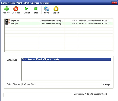 Convert PowerPoint to Flv là phần mềm chuyển đổi PowerPoint (ppt, pptx, pptm) sang Flash tuyệt vời, giúp bạn tạo các bản trình chiếu hấp dẫn theo định dạng của Flv. Công cụ này cũng hỗ trợ chuyển đổi theo nhóm. Nó có giao diện thân thiện với người dùng, vậy nên bạn sẽ không phải lo ngại về kiến thức đặc biệt nào. Bên cạnh đó, quá trình chuyển đổi rất dễ theo dõi với danh sách các tác vụ để dễ dàng hiển thị. Các cài đặt linh hoạt đối với các mẫu kích cỡ màn hình khác nhau nhằm đáp ứng nhu cầu khác nhau. Bạn có thể nhận file FLV từ folder đầu ra sau khi quá trình chuyển đổi hoàn thành, sau đó bạn có thể đăng tải chúng lên trang web để chia sẻ ý tưởng. Ứng dụng này có thể chạy dưới hệ điều hành Windows 98 ME NT 2000 XP 2003 Win7.