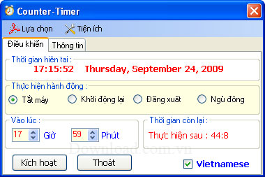 - Tắt máy, khởi động lại máy, logoff ngay trên màn hình của Counter-Timer.
