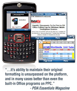 Phần mềm này cho phép đọc và chỉnh sửa các file Word, Excel, Power Point và PDF trên các thiết bị smartphone sử dụng Windows Mobile. Documents To Go còn hỗ trợ cả Microsoft Office 2007.