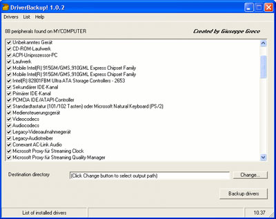 Sau khi tải chương trình về kích hoạt sử dụng, bạn sẽ được chương trình đưa ra danh sách toàn bộ driver để sao lưu. Chỉ cần chọn toàn bộ và chọn đường dẫn sao lưu thông qua nút Change và nhấn Backup Drivers là chương trình sẽ tự động sao lưu driver vào thư mục chỉ định. Bây giờ, bạn chỉ cần dùng Nero để ghi thư mục này vào một CD là có thể sử dụng khi cần.