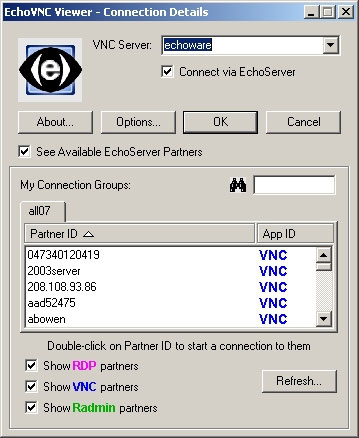 EchoVNC là phần mềm điều khiển máy tính từ xa bảo mật và tiện dụng. EchoVNC hỗ trợ các cách truy cập thông qua VNC, Remote Desktop và RAdmin.