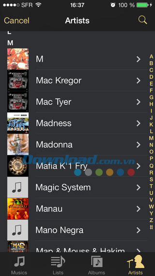 - Cho phép truy cập không giới hạn vào thư viện nhạc gốc trên thiết bị (người dùng có thể sắp xếp bài hát theo thứ tự album, tiêu đề, tên nghệ sỹ hoặc danh sách phát).