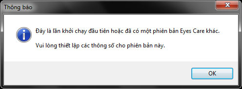 Nếu bạn đã từng, hoặc đang sử dụng phiên bản Beta, hoặc đây là lần đầu tiên sử dụng Eyes Care, khi chạy chương trình sẽ nhận được thông báo: