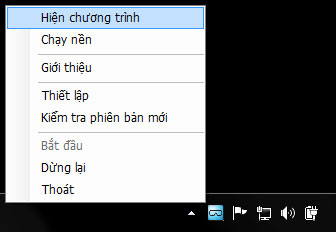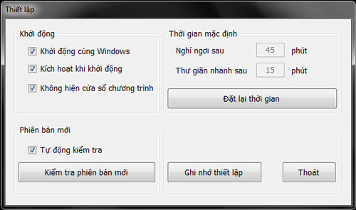 - Không hiện cửa sổ chương trình: Tự động ẩn chương trình xuống khay hệ thống khi chạy Eyes Care.