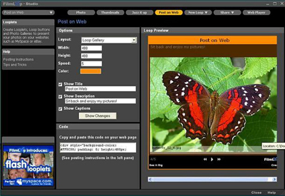 Mặc dù dịch vụ FilmLoop mới chỉ là bản Beta nhưng dịch vụ này lại khá hấp dẫn. FilmLoop hoạt động như một máy chiếu phim trên desktop, bạn có thể cuộn các ảnh xem trước giống như xem phim chuyển động chậm . Khi nào muốn xem ảnh nào ở chế độ thực chỉ cần nhấn chuột và ảnh đó. FlimLoop cho phép tạo ra các "đoạn phim chậm" và chia sẻ chúng với bạn bè và người thân.