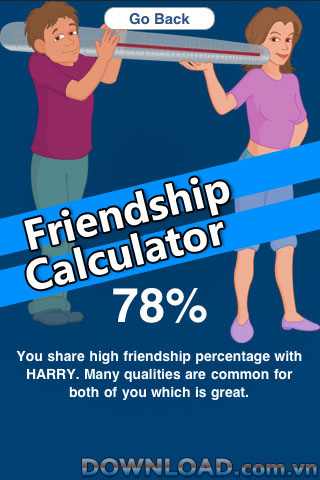 Tính toán chỉ số tình bạn với mỗi người bạn thân bằng phần mềm Friendship Calculator for iOS.