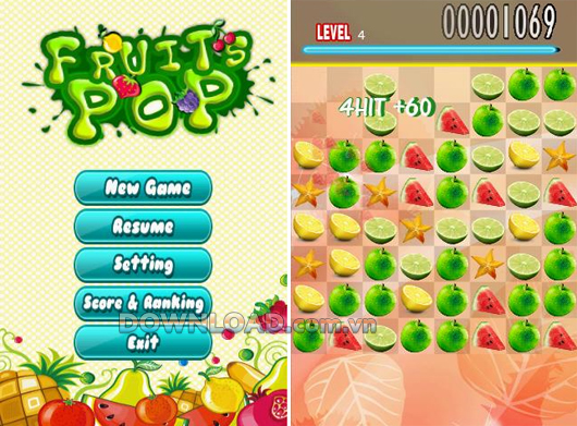 Fruits Pop là trò chơi cổ điển và thú vị. Loại bỏ những loại trái cây bằng cách chọn vào những cụm ba hoặc nhiều hơn các hình hoa giống nhau. Mục tiêu của bạn là xóa hết tất cả các loại trái cây hiển thị trong mỗi màn chơi.