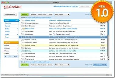 GeeMail là trình email client desktop cho Gmail, được xây dựng bằng công nghệ Adobe Air, có thể cài chạy trên Windows, Mac hay Linux. Bạn có thể kiểm tra email từ desktop mà không cần mở trình duyệt. Đặc biệt, GeeMail hoàn toàn miễn phí.