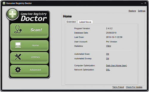 - Quét và sửa chữa: Quét toàn bộ hệ thống và đầy đủ các vấn đề chẩn đoán của các registry, bảo mật, các tập tin rác và hệ thống. Genuine Registry Doctor cung cấp cho bạn một cách để sửa chữa tất cả các lỗi và tối ưu hóa hệ thống máy tính.