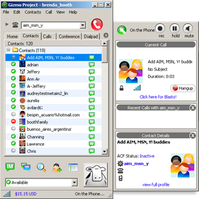 Gizmo Project sử dụng kết nối internet để thực hiện cuộc gọi đến những máy tính khác. Với một cú click chuột, bạn đã có thể kết nối đến bạn bè, gia đình và đồng nghiệp trên khắp thế giới. Bạn có thể nói chuyện bao lâu tùy thích, tất nhiên là hoàn toàn miễn phí. Và với những add-on như CallIn (gọi đến) và CallOut (gọi đi), bạn có thể nói chuyện với bất cứ người sử dụng di động và cố định nào trên khắp hành tinh này.