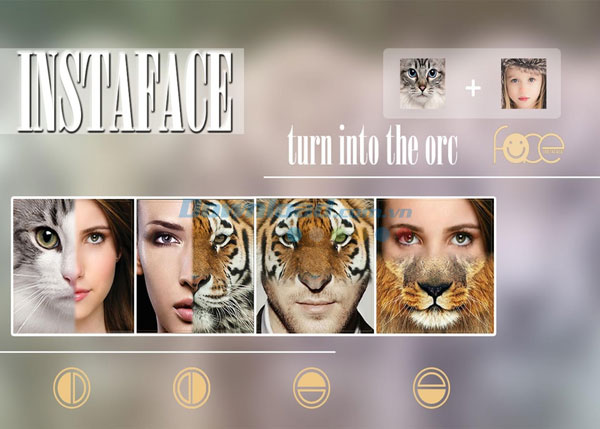 Với InstaFace, bạn không chỉ ghép khuôn mặt mà có thể tạo hiệu ứng mắt thú sống động và trông rất thật. Động vật có phải là người bạn tốt nhất? Bạn có thích hổ? Hay thích một con mèo? Hãy sử dụng InstaFace cho Android để biến hóa khuôn mặt mình thành mặt của các loài động vật nó cũng có thể biến đôi bắt của bạn long lanh như mắt chim, hung tợn như mắt của loài sư tử trên khuôn mặt của bạn. Sau đó, bạn có thể nhanh chóng chia sẻ những bức ảnh độc đáo này lên mạng xã hội Facebook hoặc Instagram để khoe với bạn bè.