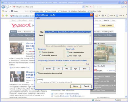 InternetScrap chụp ảnh toàn bộ trang web lại và lưu trang vào định dạng hình ảnh. Vì thế bạn sẽ không sợ mất những thông tin bạn cần xem lại khi lưu bằng những cách khác.