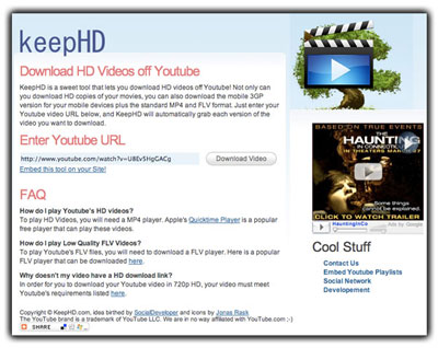 KeepHD là dịch vụ trực tuyến để tải file từ Youtube theo nhiều chất lượng khác nhau.