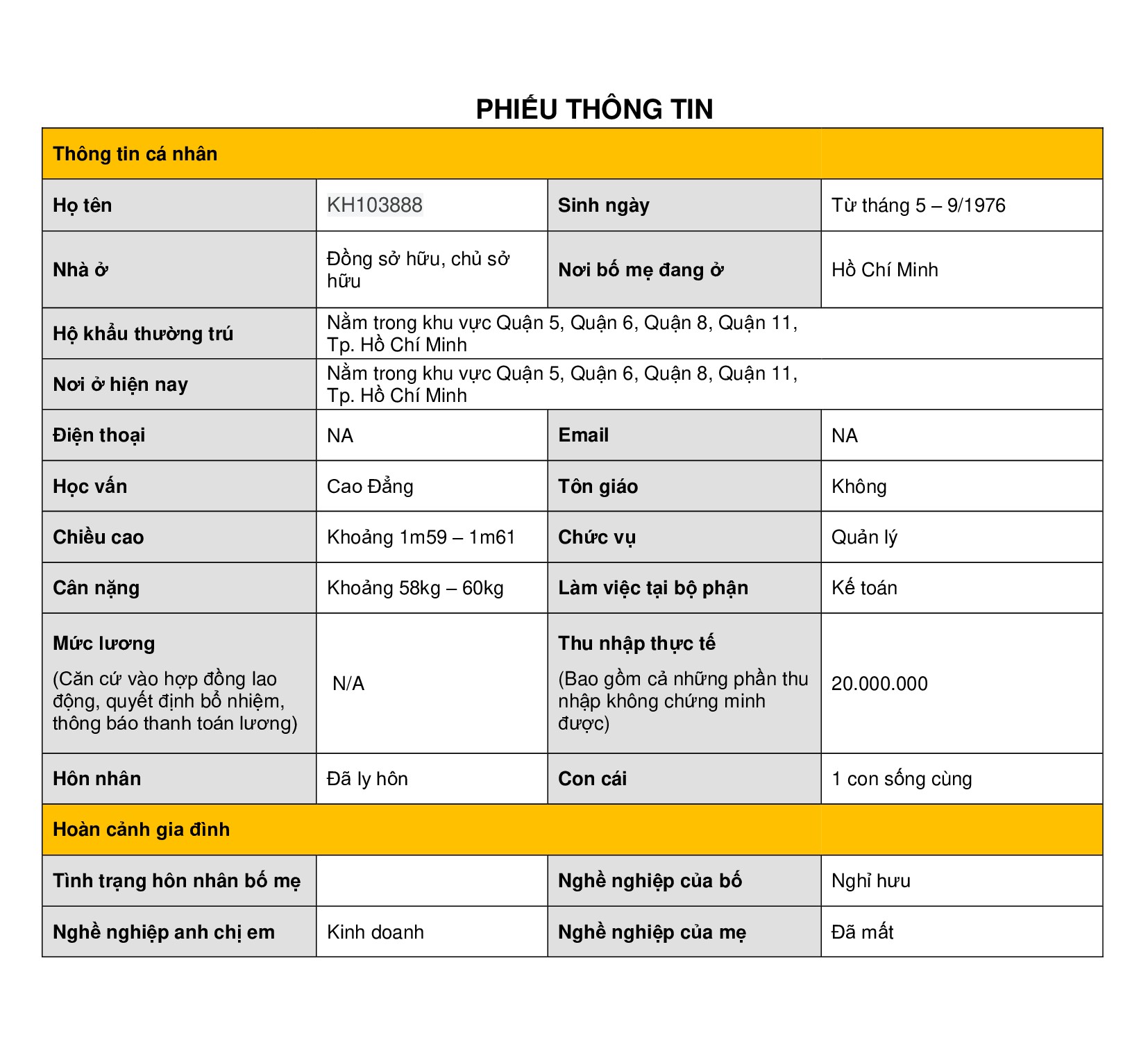 C* Mức phí để tổ chức cuộc hẹn xem mặt với hồ sơ này là 6.000.000 đ