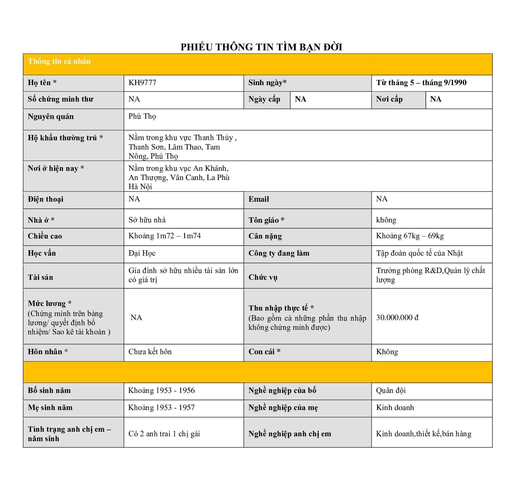 Thu nhập thực tế * (Bao gồm cả những phần thu nhập không chứng minh được): 30.000.000 đ