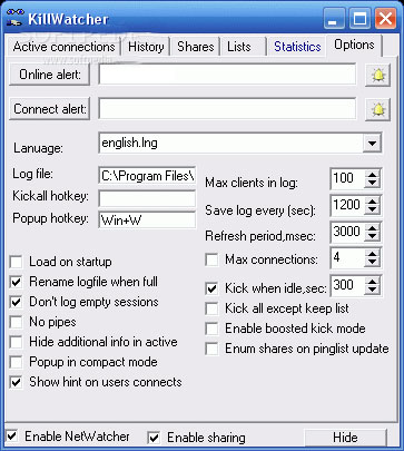 Ngoài ra, KillWatcher còn cho phép bạn ghi lại toàn bộ các hoạt động của người dùng vào file log, giúp bạn quản lí tài nguyên chia sẻ tốt hơn.