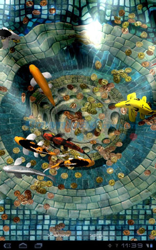 Hình nền động cá Koi được xây dựng trong OpenGL 2.0 với mặt nước có khả năng rung động khi tương tác đa điểm. Hỗ trợ đầy đủ cho cả máy tính bảng và điện thoại ở cả chế độ chân dung và phong cảnh. Bạn có thể chạm 2 lần vào màn hình để cho cá ăn. Nếu yêu thích ứng dụng này, bạn có thể nâng cấp lên phiên bản full để truy cập cài đặt màn hình với các điều khiển như mật độ cá, hình nền, hạt mưa, cây cối, vv