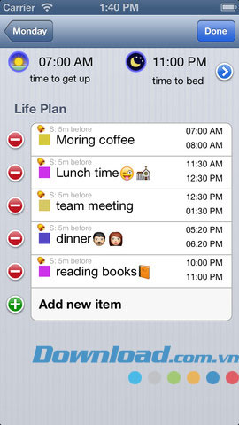 Với mục đích duy trì các nguyên tắc trong cuộc sống, Life Planner Free for iOS đóng vai trò như một công cụ hữu ích cho người dùng. Nếu bạn quên một công việc nào đó từ thời gian này đến thời gian khác, hoặc nếu bạn muốn xây dựng thêm nhiều nguyên tắc trong cuộc sống thì Life Planner Free for iOS chính là tiện ích hoàn hảo dành cho bạn.