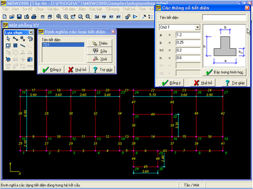 - Đầy đủ các dạng tiết diện hình học của cấu kiện dầm như tiết diện chữ nhật, chữ T, chữ I, hình hộp.
