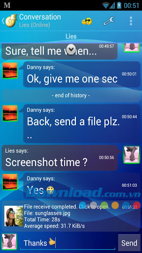 - Chuyển tệp tin: gửi / nhận loại tệp tin bất kỳ tới và từ các số liên lạc Windows Live Messenger (MSN Messenger) của bạn.