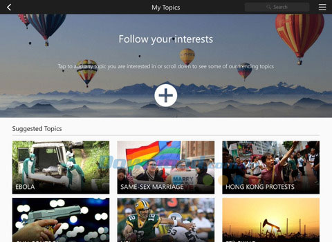 Theo dõi các chủ đề mà bạn quan tâm, chẳng hạn như tin tức của câu lạc bộ thể thao mà bạn yêu thích, ngôi sao hàng đầu Hollywood hay đồ công nghệ sắp ra mắt thị trường. Bạn có thể đăng nhập bằng tài khoản MSN của mình để lưu các mục yêu thích này.