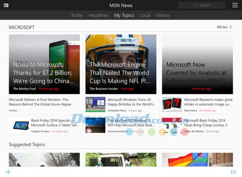 MSN News nổi bật với giao diện người dùng phong cách Metro quen thuộc của Microsoft, hiển thị thông tin rất rõ ràng và bắt mắt. Ứng dụng cung cấp bài viết đầy đủ để đọc và cập nhật tin tức trên toàn thế giới. Ngoài ra còn có mục để bạn chọn tin tức cụ thể cần đọc, thật thuận tiện và dễ dàng.