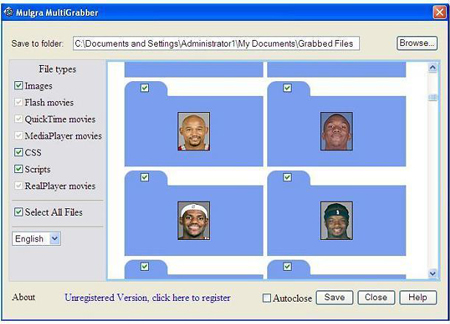 Sử dụng MultiGrabber để lưu các file multimedia được nhúng trên các trang web nhanh chóng và tiện lợi. Nó có thể lưu được hình, CSS, các script, các flash, phim QuickTime, phim RealPlayer và phim MediaPlayer. Tự động rename các file theo thứ tự.