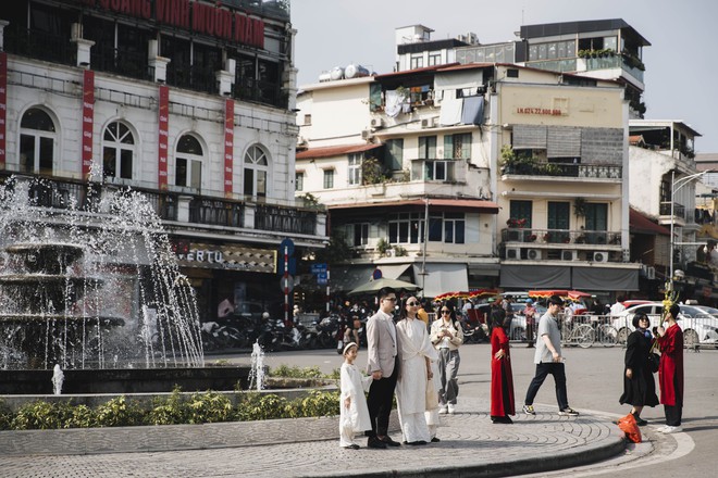 Trên nhiều nẻo đường, nhiều người dân vẫn tranh thủ đi chụp ảnh với những tà áo dài rực rỡ. Những bộ áo dài nhiều màu sắc càng khiến cho cảm giác mùa xuân gần hơn, Tết gần hơn...
