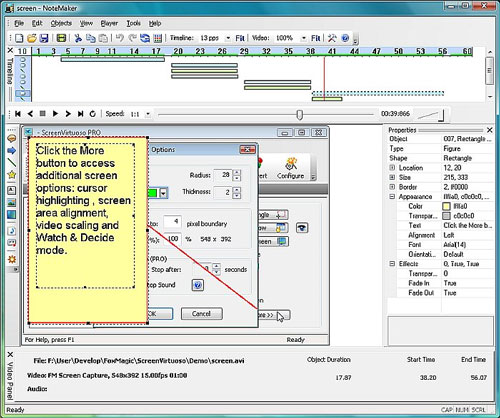 Ứng dụng NoteMaker được phát triển là một trình biên tập video có thể giúp bạn chú thích các video AVI, WMV, MPEG bằng cách thêm các ghi chú, văn bản, âm thanh, hiệu ứng và xuất ra thành các file AVI, WMV, FLV/SWF. NoteMaker cung cấp nhiều ghi chú sẵn có mà bạn có thể thêm vào video như mũi tên, đường, văn bản, hình ảnh, phác thảo, và nhiều hơn nữa. Chương trình cũng cung cấp chế độ xem trước cho phép bạn xem kết quả tại thời điểm thiết kế. Bạn cũng có thể thay đổi video frame rate, kích thước của nó và codec.