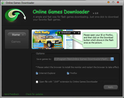 Online Games Downloader sẽ giúp bạn tải game dạng Flash trên mọi website về máy tính để chơi ngay cả khi không có Internet. Online Games Downloader chỉ có 3 giao diện, rất đơn giản cho người dùng: