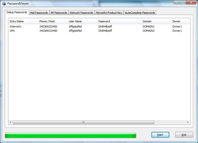 Sau khi tải về, bạn tiến hành cài đặt chương trình, rồi kích hoạt biểu tượng mang tên PasswordViewer trên màn hình nền để vào chương trình. Trên giao diện chính, bạn nhấn Start để chương trình quét và tìm password. Các password mà chương trình tìm được gồm 6 loại và được chia làm 6 nhóm:
