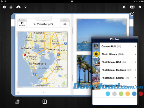 - Bổ sung tiêu đề, ngày tháng và thậm chí là thông tin thời tiết vào các trang của album ảnh.