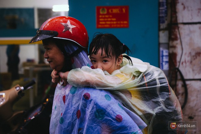 Đang ẵm con lội nước về, chị Dương (quận Gò Vấp) chia sẻ: "Mùa mưa là con đường này lại ngập nên rất vất vả trong việc đón con. Nước nhiều như vậy thì nguy hiểm cho các bé, có trường hợp phụ huynh làm rớt bé dưới nước phải vớt lên, người ướt hết, rất tội nghiệp".