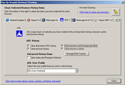 Pop-Up Stopper Professional để chặn popup như thanh công cụ tìm kiếm của Google hay AltaVista với khả năng tạo ra báo cáo riêng về nội dung các tập tin history, cache và cookies của trình duyệt lưu tạm trên phần cứng máy tính.