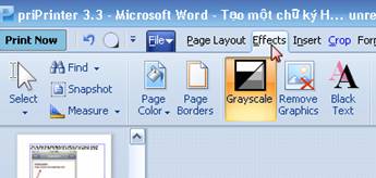 Cung cấp cho bạn 5 công cụ để lựa chọn cho bản in bao gồm Page color (chọn màu nền cho trang in, nếu bạn có máy in màu thì chọn không thì giữ nguyên), Page Borders (chọn khung viền cho trang in), Grayscale (chuyển nội dung trang in thành đen trắng), Remove Graphics (xóa toàn bộ hình ảnh trong bản in và không in hình), Black Text (chuyển toàn bộ chữ thành màu đen, thích hợp cho bản in đen trắng).