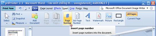 Tại đây cung cấp cho bạn các công cụ đóng dấu bản quyền cho tài liệu in, chèn trang, chèn tài liệu, chèn chữ … cho bản in. Bấm nút Add Document nếu muốn chèn một file văn bản khác vào bản in, bấm nút Page number để chèn trang, bấm nút Picture để chèn ảnh, bấm nút bên phải nút Picture để chèn các ký hiệu vào bản in. Mặc định các tùy chọn trên sẽ chèn vào tất cả các trang in (All Pages), nếu với những tùy chọn chèn nào mà bạn chỉ muốn chèn cho trang đó thôi thì bấm nút Current Page rồi kích chọn chức năng cần chèn vào trang đó.