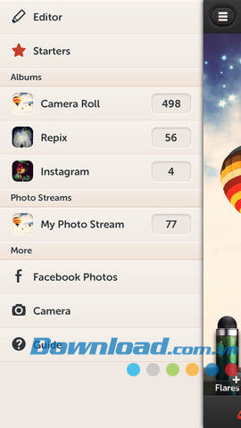 - Chia sẻ ảnh trực tiếp lên mạng xã hội Facebook, Instagram, Twitter hoặc Tumbr thông qua tùy chọn #repix.