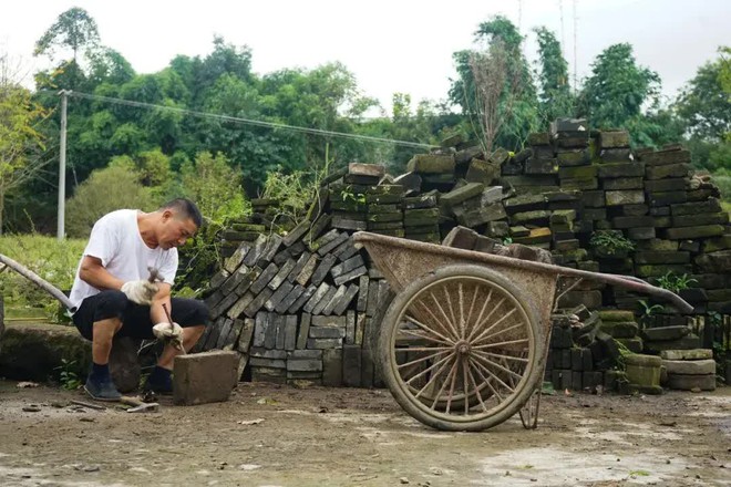 Bố của Liao Quanfu cảm thấy thật đáng tiếc khi những công trình cổ kính ở quê hương đã biến mất nên đã đi sưu tầm những vật liệu cũ này.
