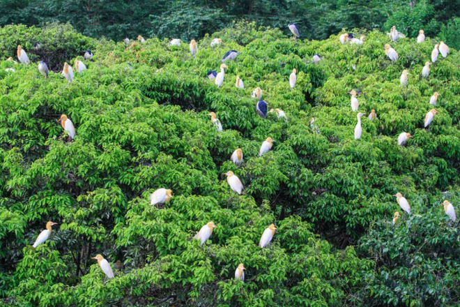 Hàng trăm con chim đã đến khảo sát môi trường sống, bay lượn trên bầu trời rồi quyết định hạ cánh sinh sống tại nơi này.