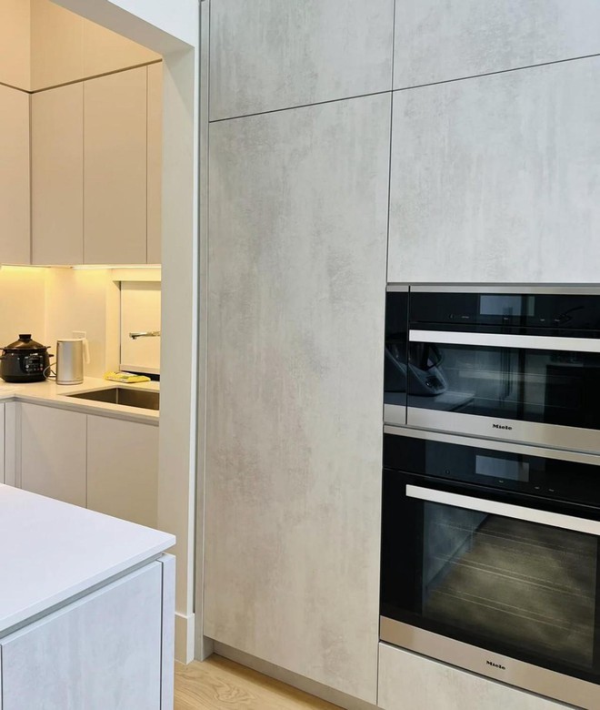 Về tủ lạnh, quan điểm của tôi là: dù đặt tủ lạnh bên ngoài cũng đừng hy sinh kích thước của các đồ khác. Bởi vì mục đích sử dụng tủ lạnh không bao giờ chỉ giới hạn ở nhà bếp. Ở nhà mới, sau khi lấy tủ lạnh ra khỏi bếp và lắp vào phòng ăn thì gia đình tôi thấy thiết thực hơn.